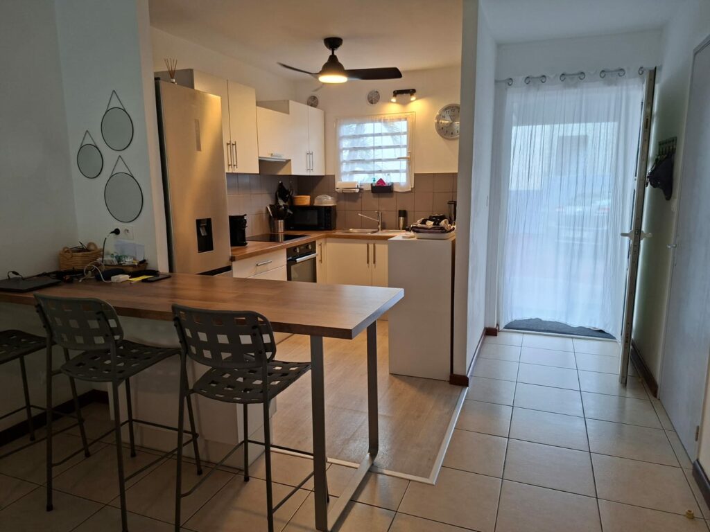 • · Un rez-de-chaussée convivial : un séjour lumineux qui s’ouvre sur l’extérieur, une cuisine prête à accueillir vos recettes créoles, et une chambre paisible avec son petit coin lavabo privé, idéale pour les invités ou un bureau.